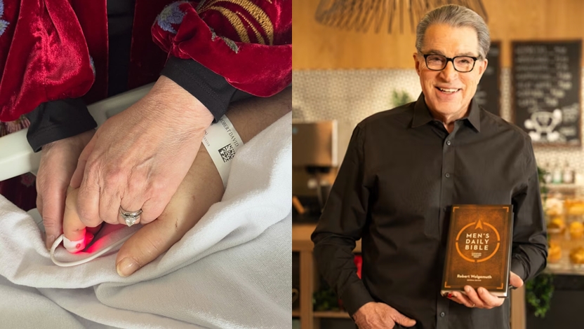 馬偕醫院董事長胡志彊牧師(左)與馬偕醫學院董事長劉世春牧師一起禱告