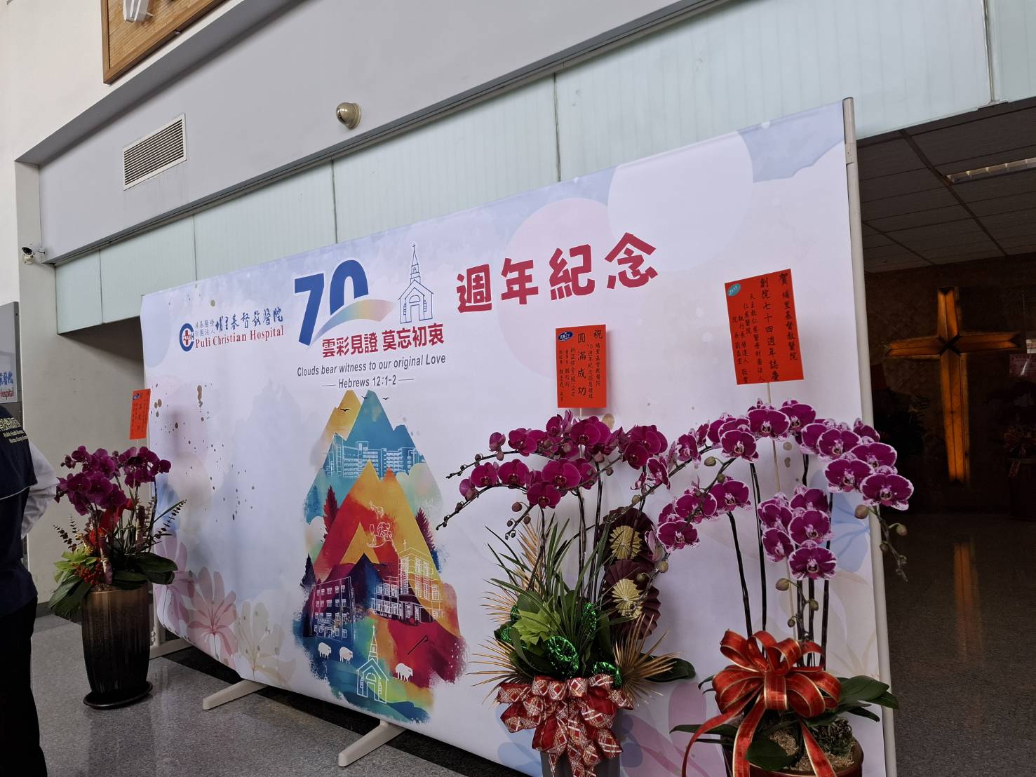 埔里基督教醫院於16日在院內「九二一紀念堂」舉行70週年紀念感恩禮拜,主題為「雲彩見證,莫忘初衷」,引用希伯來書十二章1至2節經文。包括政府機關代表、地方民意代表、日韓姐妹醫院來賓、醫療體系與教會夥伴、埔基護校校友及院內同仁等,約400位貴賓齊聚一堂,在詩歌、見證與感恩中,共同回顧埔基七十年來守護生命、服事偏鄉的重要歷程,現場洋溢感恩與祝福的氛圍。