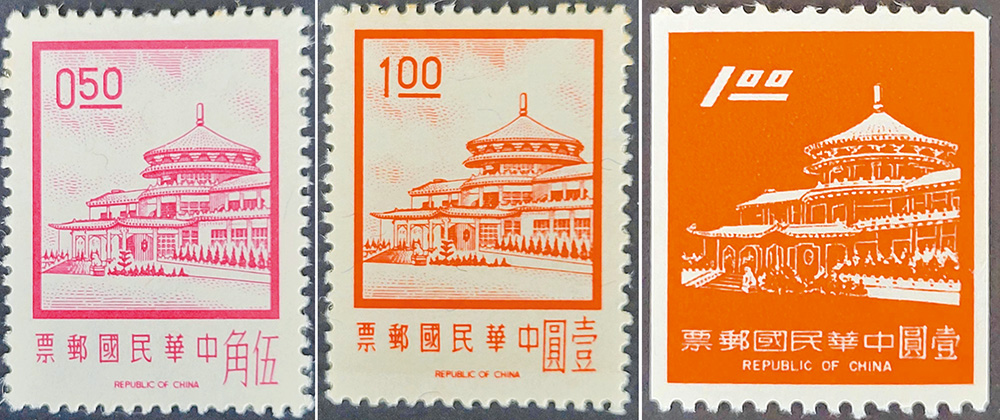 引人注目的是,搭設一處百元鈔票中山樓圖面的留影拍照點,遊人手持巨幅百元鈔票,莞爾一笑。沿著長廊,最令我意外的,是佈置有「郵票常設展」,這裡展出的郵票主題頗豐,或與國父肖像相關,或各種中山樓郵票(圖五),或歷任總統就職郵票,還有逢十的建國紀念郵票。這些郵票展品,圖文詳盡,藉由方寸之美,認識我中華民國政經發展與變遷。